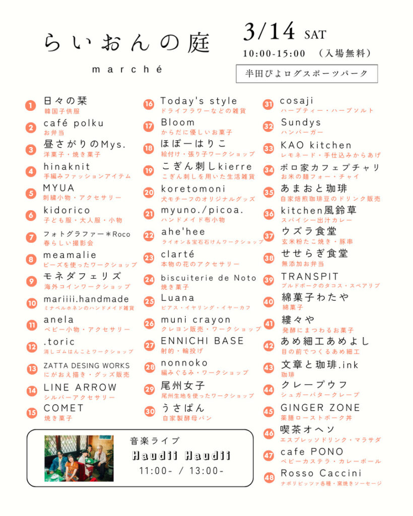11時と13時には音楽のライブもあります!